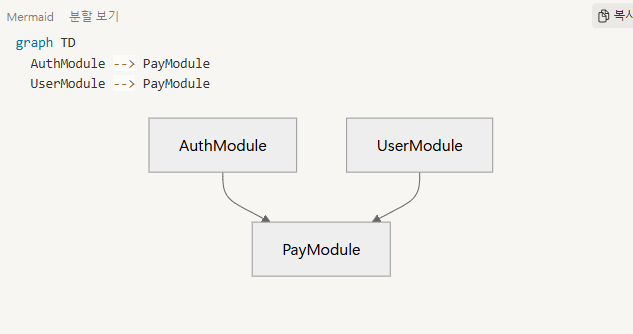 아래 코드를 보면 PayModule 에서 Auth,User 모듈을 가져와서 쓰고 있다.