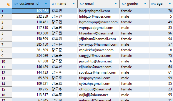2.고객을 이름 순으로 오름차순으로 정렬하기