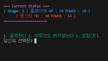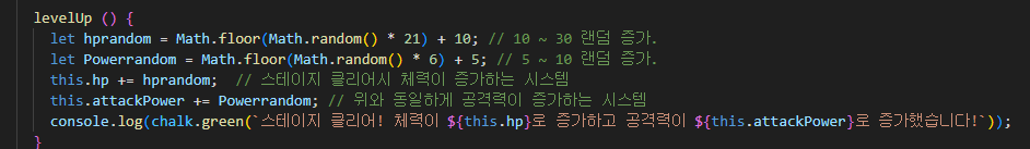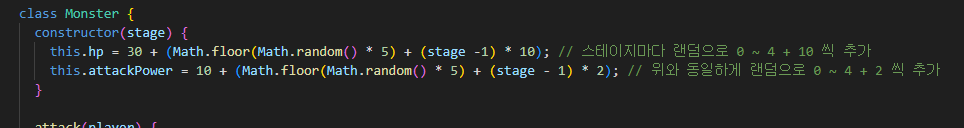 플레이어의 체력과 공격력, 몬스터도 똑같이 랜덤 형태로 올라가게 만들었다.