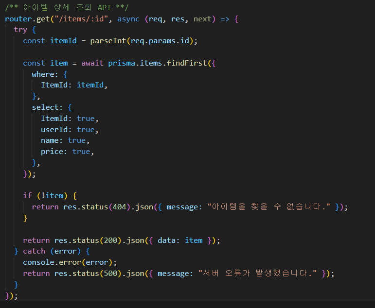 return res.status(404).json({ message: "아이템을 찾을 수 없습니다." });