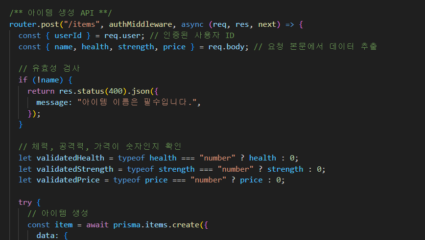 return res.status(400).json({ message: "아이템 이름은 필수입니다." });