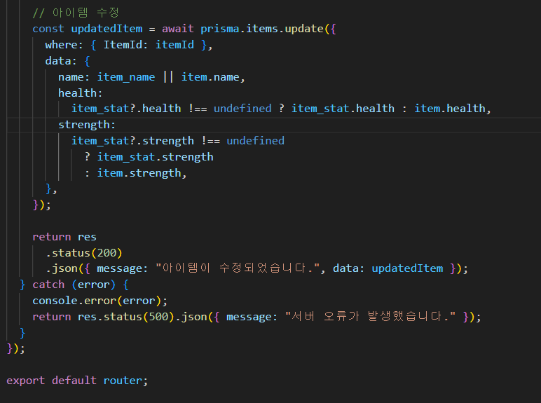 return res.status(200).json({ message: "아이템이 수정되었습니다.", data: updatedItem });